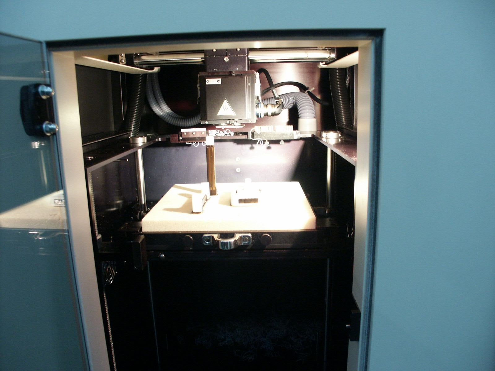 快速成型室是服务于学生创新设计的创新类实验室,拥有ATOS光学三维扫描仪一套、FDM3000快速成型机一套和超声波清洗机一套。可提供样件及模具表面数据分析、三维实体的数字测量及数据处理等服务,学生可完成三维几何信息采集、逆向设计、三维实体建模、样品模型打印到模型后处理全过程创新设计,实验室主要服务于创新设计和毕业设计。
