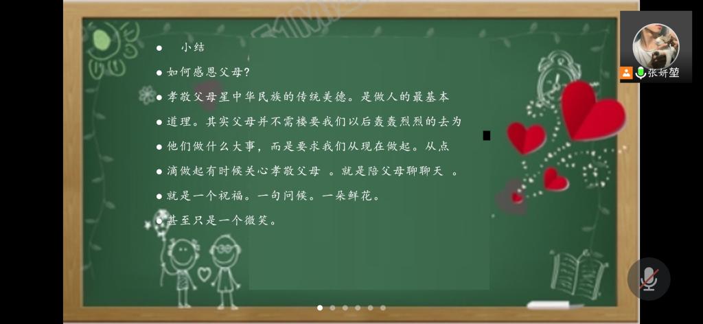 会上,张妍堃同学从“感恩党”“感恩父母”“感恩老师”三个角度入手,用一个个普通而又发人深省的事例,对同学们进行了一次深入细致的感恩教育,让同学们进一步了解什么是感恩,感恩的意义何在,引导同学们要以一颗感恩的心回报祖国、回报亲情、回报师恩。