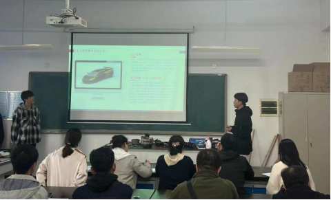 赛题包含对智能车的机械结构设计、三维模型构建、工业设计、智能控制技术、电子电路技术、激光雷达及深度摄像机等新型传感器应用等多项技术,提前让学生熟悉企业所用的技术,从而提升学生就业能力。每个小组通过PPT、说明书、汽车模型图和小组答辩展示自己的汽车创新设计。比赛中,选手们神采奕奕地展示着科技前沿成果,他们整装待发期待那破茧瞬间的绽放与蓄势华丽的转身,为了站上这一舞台,他们付出了不少汗水。最后,评委老师针对不同小组作出了提问,创新与思维的巧妙碰撞、口才与语言的无暇结合、产品与方案的完备整合都让在场的评委老师赞叹。选手们所展现出来的朝气与自信、执着追求梦想的毅力与战斗力更是赢得了观众的掌声,而现场评委精辟独到点评更是将比赛推向了又一个高潮,充分展现了新时代大学生独有的青春魅力与创新智慧。
