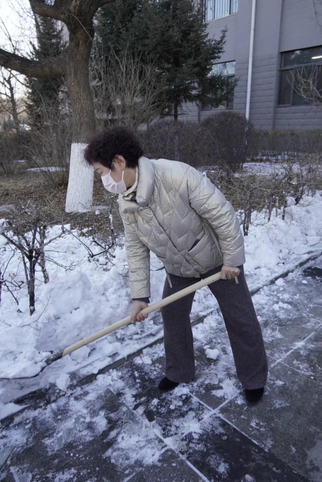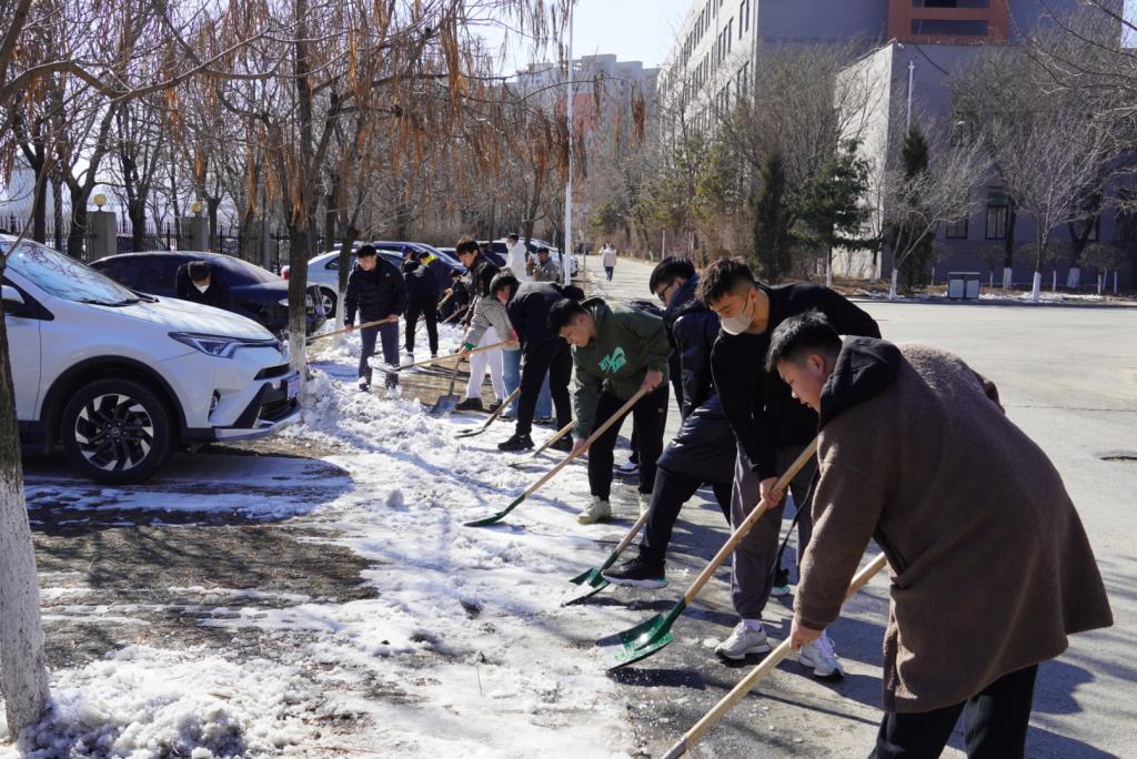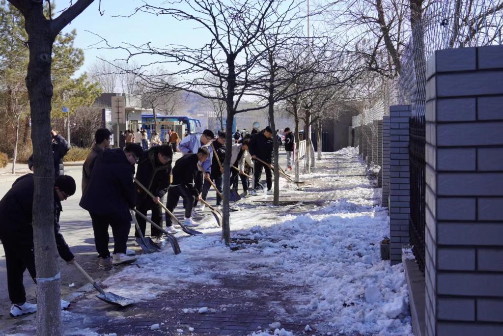 事无大小皆心系师生,在孙静芬、孙奇两位老师的带领下,同学们不畏严寒、分工明确、通力合作,在乍暖还寒的初春挥着铁锹、雪铲等工具全力以赴地进行校园除雪融冰的活动,铲雪除冰过程高效有序,清扫道路积雪和路面冰层,经过两个小时的努力,被积雪覆盖的甬路在铛铛的铲雪声中露出原貌,不仅消除了路面的安全隐患,更守护了师生的正常生活。