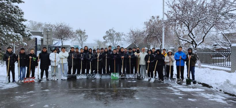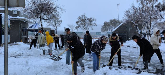 凛冽的寒风阻挡不了同学们的热情。同学们不畏严寒,挥舞着铁锹、推铲等劳动工具,齐心协力、相互配合,分区清扫积雪。大家在欢声笑语中扫出了干净的人行道,消除了大雪天气导致的安全隐患,为师生的安全出行提供了方便。虽然大家的衣服、鞋子都弄湿了,脸和手都冻得通红,但看着成果,每个人的脸上都洋溢着开心的笑容。