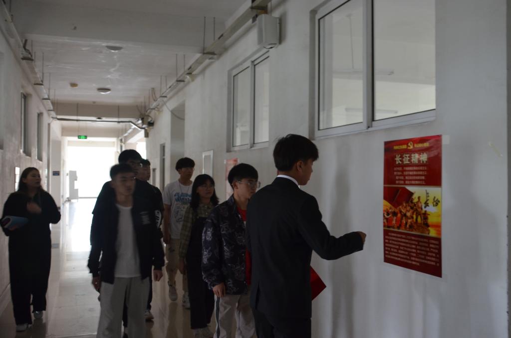 本次活动,主要由机械学院学生党支部董浩同学及杜尚鑫同学为入党积极分子作详细讲解介绍。文化长廊通过传统文化与现代文化相结合的艺术表现形式,表现爱党、敬党的内涵文化,将党的一大到党的十九大串联起来,回忆先辈们所做出的贡献,使人不禁为之震撼,为先辈事迹所深深感动。来到三楼的文化长廊时,映入眼帘的是一张张有关党的革命精神宣传海报,其中最具有代表性的就是红船精神和抗疫精神,每幅海报都内容丰富,寓意深刻,为入党积极分子上了一堂生动的思政课。
