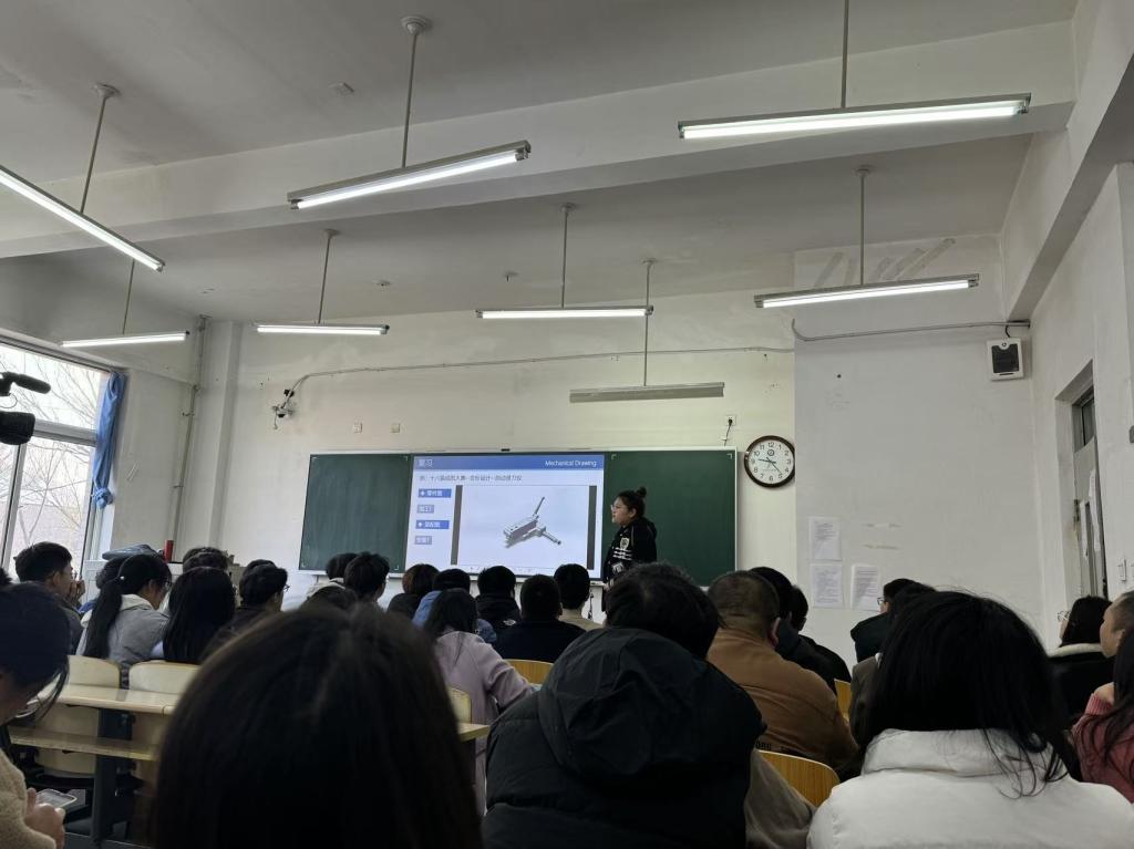 此外,肖萌老师为让学生深入了解剖视图的实际应用,特别播放了剖视图在工程现场应用的视频,有效吸引了学生的注意力。她亲自示范Solidworks软件的正确使用,从软件启动到选择剖视图、标注绘制的每一步,都做了详尽的演示。在示范过程中,肖老师还特别提示了绘制剖视图时可能遇到的问题及解决方法,以及需要注意的细节,这种结合理论与实践的教学方法,让学生对剖视图的构成和SW软件的应用有了全面而深入的理解。