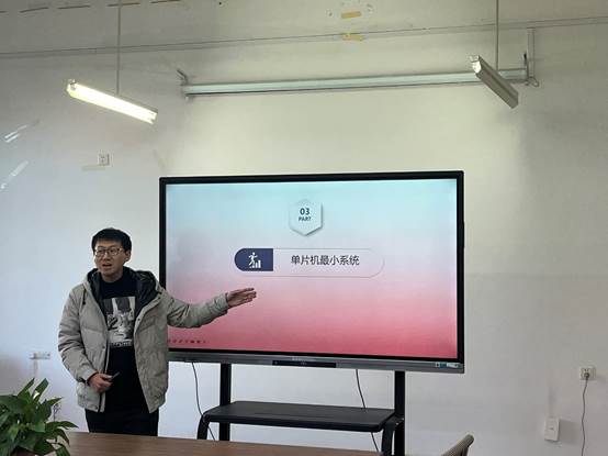 王茂霖老师试讲内容为机电创新实践基础中单片机原理与应用部分的单片机最小系统。讲解了单片机最小系统的定义、电源电路、复位电路、晶振电路,通过实物展示具象化理论教学。