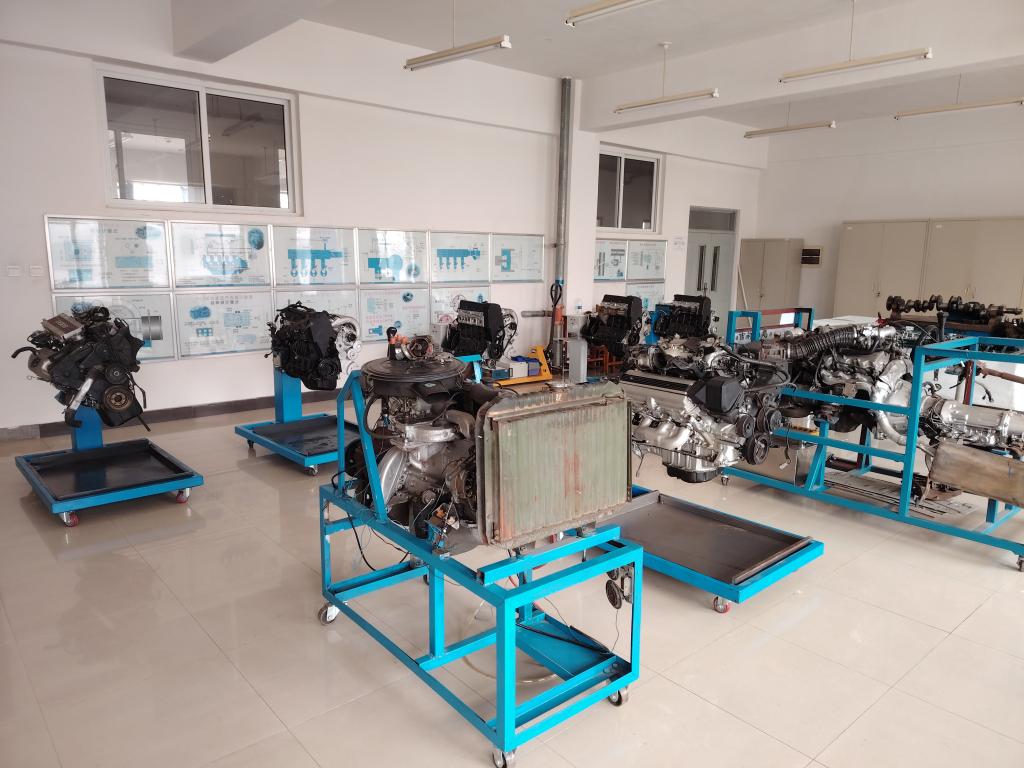 发动机实验室拥有捷达、雷克萨斯、卡迪拉克以及桑塔纳等多个车型的发动机拆装设备,以及数台剖开的发动机试验台演示设备。