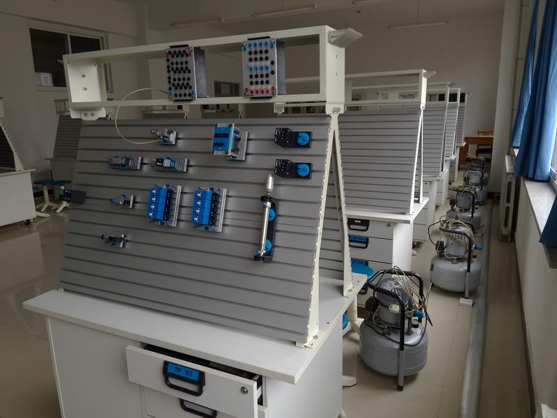 气动实验室引进的是德国费斯托(FESTO)工业自动化教学培训系统中的气动实验装置模块,费斯托工业自动化教学培训系统享誉全球,在全世界100多个国家都设有分支机构,其教学培训系统通过DIN/ISO 9001认证,并于1997年作为培训领域中的行为模范获“培训奥斯卡”奖。费斯托教学培训系统与实际生产应用结合紧密,完全应用工业元器件,并且费斯托教学培训系统及其元器件满足所有的相关标准,如DIN/ISO和VDE的要求。他们的培训与计划能力被西门子授予SIMATIC Solution Provider的称号。