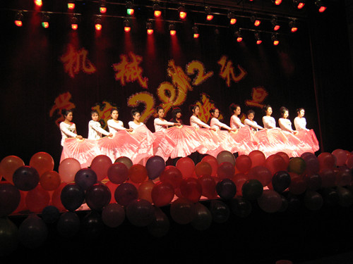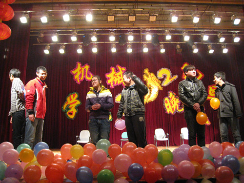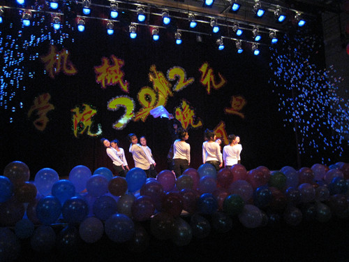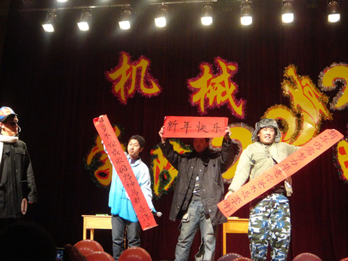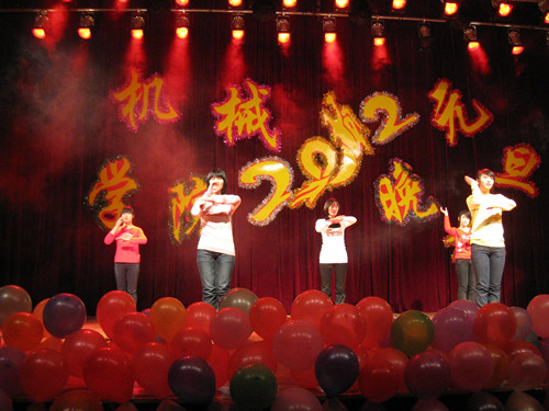 整场晚会形式多样、节目精彩、气氛热烈。学院院长杜运普教授在晚会上总结了2011年的学生工作,向全院师生致新年贺辞,表达了对全院师生的美好祝愿。开场视频涵盖了2011年学院及全体学生取得的成绩和所开展的活动,一个个难忘瞬间勾起了同学们对2011年无限美好回忆。由13名机械女生表演的扇子舞体现了古典舞的唯美,诗朗诵《我爱你老师》表达了学生对老师的感激之情,小品《招聘》引得全场笑声不断,最后晚会在歌曲《爱你一万年》中圆满落幕。
