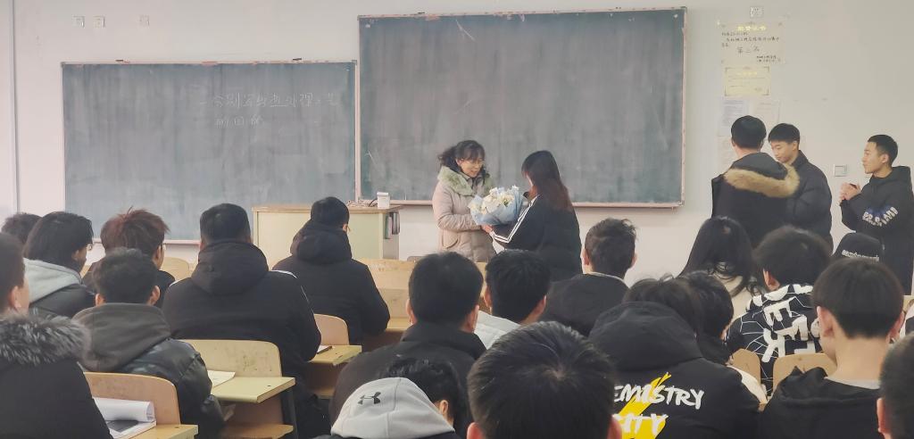 课堂上,同学们为老师献上鲜花,同时表达出内心最真挚的话语:“您把青春无私奉献给教育事业和我们,我们向您致以崇高的敬意!您辛苦啦,老师……”,浓浓的感恩之情感染现场的每一个人。于慧老师献身教育几十年,育人初心永不改,培育桃李满天下。她在几十载的时间里,对工作认真负责,生活态度乐观向上,用心用情用行教育学生,在辽科的教育热土上用自己的辛勤汗水默默耕耘、无私奉献。