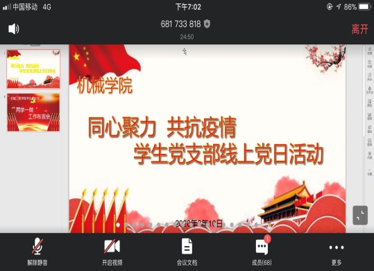 开云kaiyun官方网站学生党支部于3月10日晚7点,在线上组织开展“同心聚力,共抗疫情”线上党日活动,活动由学生党支部书记崔彩霞老师主持。党总支副书记孙丰、辅导员老师及全体学生党员参加了本次党日活动。