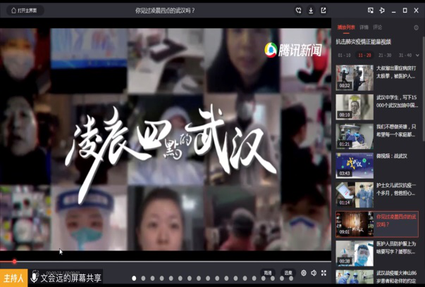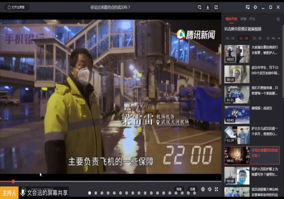 一段视频“凌晨四点的武汉”拉开了党日活动的序幕。该片纪录了抗疫期间12个普通人的武汉故事,展现了这座英雄的城市从深夜22点到凌晨5点半的不眠不休和温情流动,在困难面前他们选择了毅然坚守和“疫”无反顾。看过此片,与会人员产生共鸣,宋宪伟,梁佳唯,陈立安等同学积极发言,表达自己对此次战“疫”的决心和身为共产党员的责任与担当。正如宋宪伟同学所说:“每在这种时刻,作为预备党员的我就越发的骄傲和自豪,同时,也深感肩负的责任之大,虽然不在疫情的最前线,虽然还是一名在校大学生,但我们会时刻待命,做好自己,积极起到模范带头作用。”陈立安同学讲述了自己参加当地志愿服务的经过与感受,为能在战胜疫情中贡献自己力量而感到荣幸。