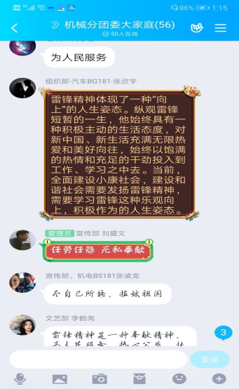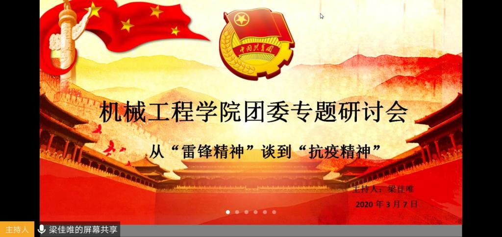 雷锋精神体现了一种崇高的精神境界,一种时代的担当,无论社会如何变迁,雷锋精神的“内核”都永远不变。在疫情面前,我们更加需要发扬雷锋精神,互帮互助,共同渡过这段特殊时期。3月7日下午一点,开云kaiyun官方网站团委专题研讨会在线上如期进行。本次研讨会由分团委副书记梁佳唯同学主讲,分团委各部门同学围绕从“雷锋精神”到“抗疫精神”展开探讨。