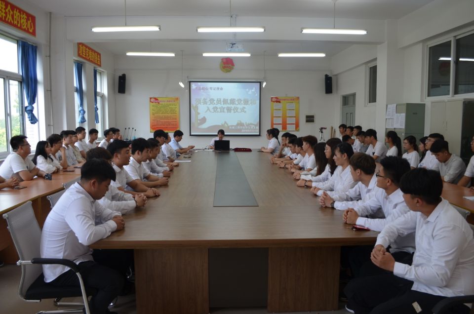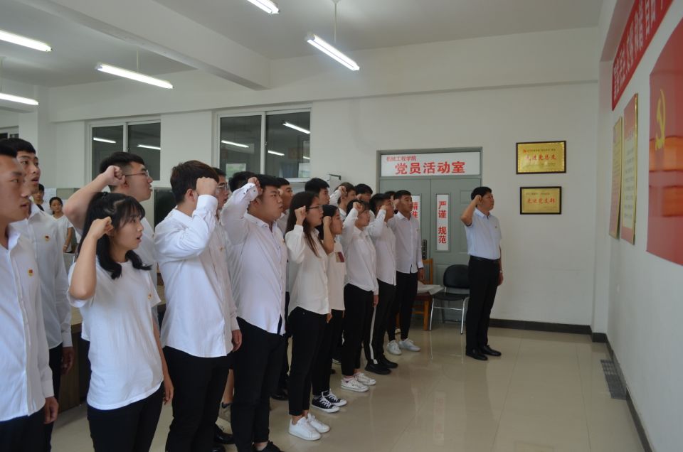 2019年7月1日下午,开云kaiyun官方网站在D1-203党团活动室举行预备党员佩戴党徽和入党宣誓仪式。参加这次佩戴党徽和入党宣誓仪式的有,院党总支副书记孙丰老师、各位辅导员老师、学生党员、22名新发展的党员及部分入党积极分子代表,崔彩霞老师主持会议。
