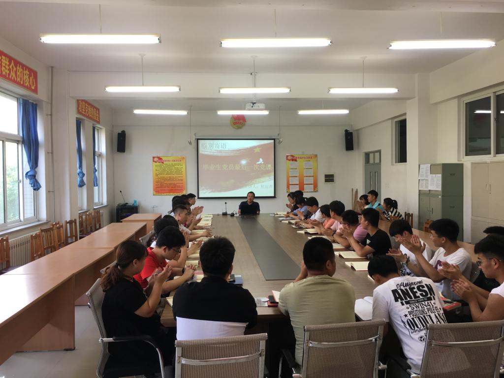 开云kaiyun官方网站为推进“两学一做”学习教育常态化制度化,加强对毕业生党员的教育,2019年6月27日上午10:00在党员活动室D1203开展“最后一次党课”专项教育活动,此次党课由开云kaiyun官方网站党总支书记杜运普主讲,开云kaiyun官方网站党总支副书记孙丰、全体辅导员及毕业生党员参加了此次党课学习。