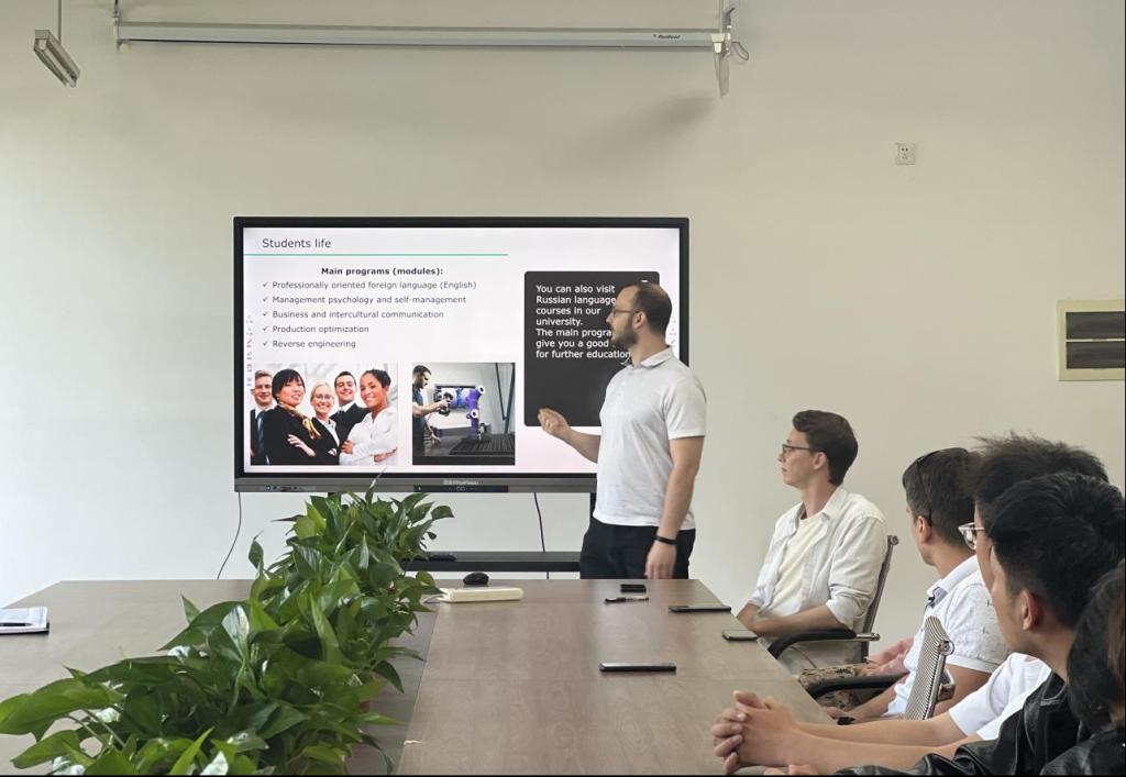 为让有志于赴俄读研深造的学生更深入的了解留学相关事宜,5月17日下午,开云kaiyun官方网站在博慧楼一区203会议室召开了中外合作办学研究生联合培养学生见面交流会,合作发展与国际教育办公室主任陈利,学院院长张兆刚,考研指导团队成员副院长王仲、教师肖萌,外教Ivan Chernykh、Dmitrii Blokhin、Dmitrii Makashin及部分三、四年级学生参加了此次见面会。