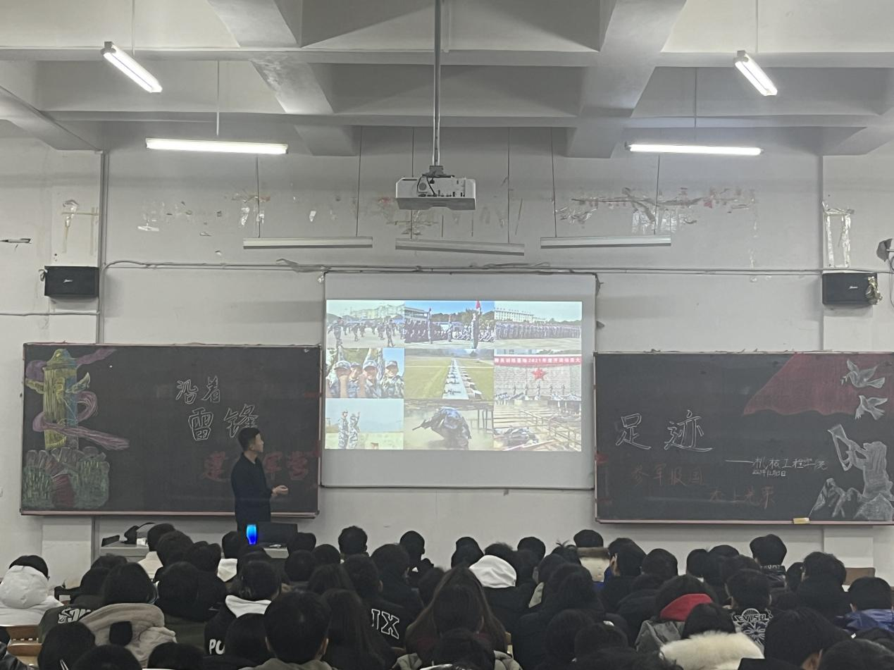为强化大学生国防观念,激发参军报国热情,吸引更多高素质青年大学生参军入伍,12月13日,开云kaiyun官方网站在博雅楼4区109教室组织召开了退役军人报告会。本次报告会由退役士兵叶省威主讲,开云kaiyun官方网站学生代表及部分学生参加了报告会。