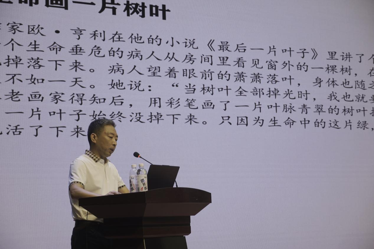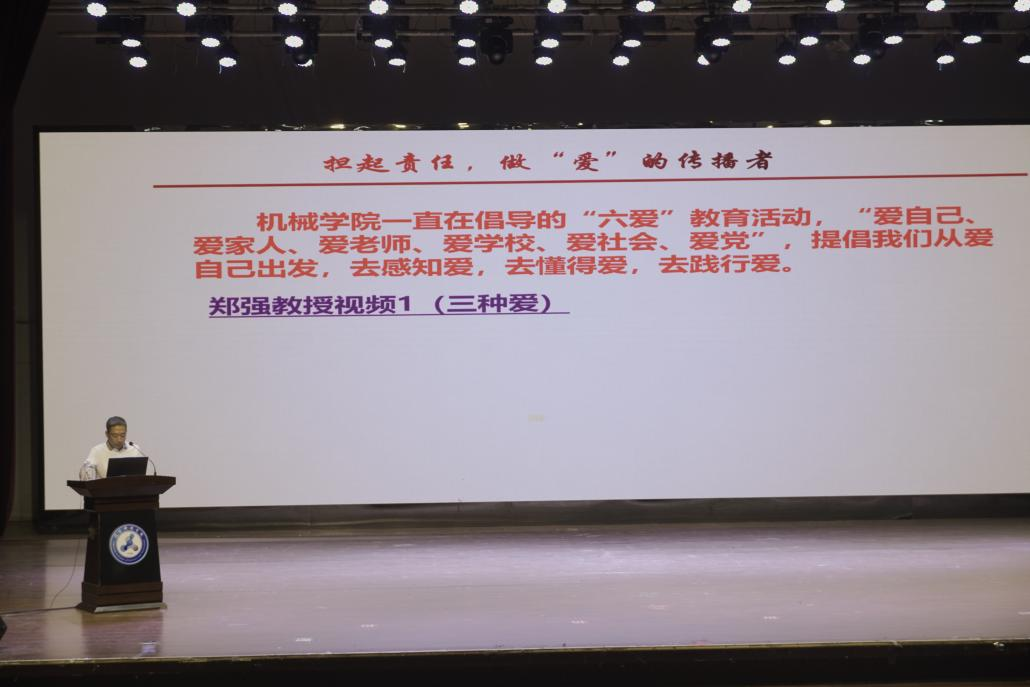 刘广春通过感人短视频和讲述亲身经历的方式向同学们阐释了“爱自己、爱家人、爱老师、爱学校、爱社会、爱党” “六爱”教育活动的深刻内涵,倡导我们从爱自己出发,去感知爱、去懂得爱、去践行爱。从践行社会主义核心价值观的角度讲解了“爱国”的涵义,他说“社会主义核心价值观对公民个人层面首先提出的就是‘爱国’,这是源于对国家的爱和忠诚,爱就是一种责任,我们要厚植家国情怀,要敢于担当,做爱国的践行者。”