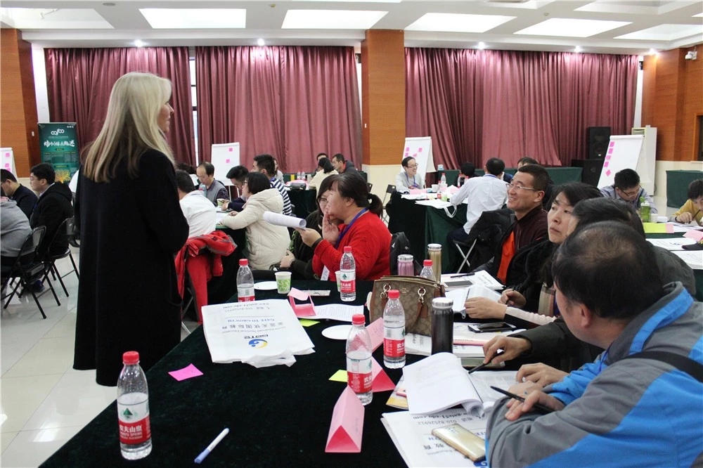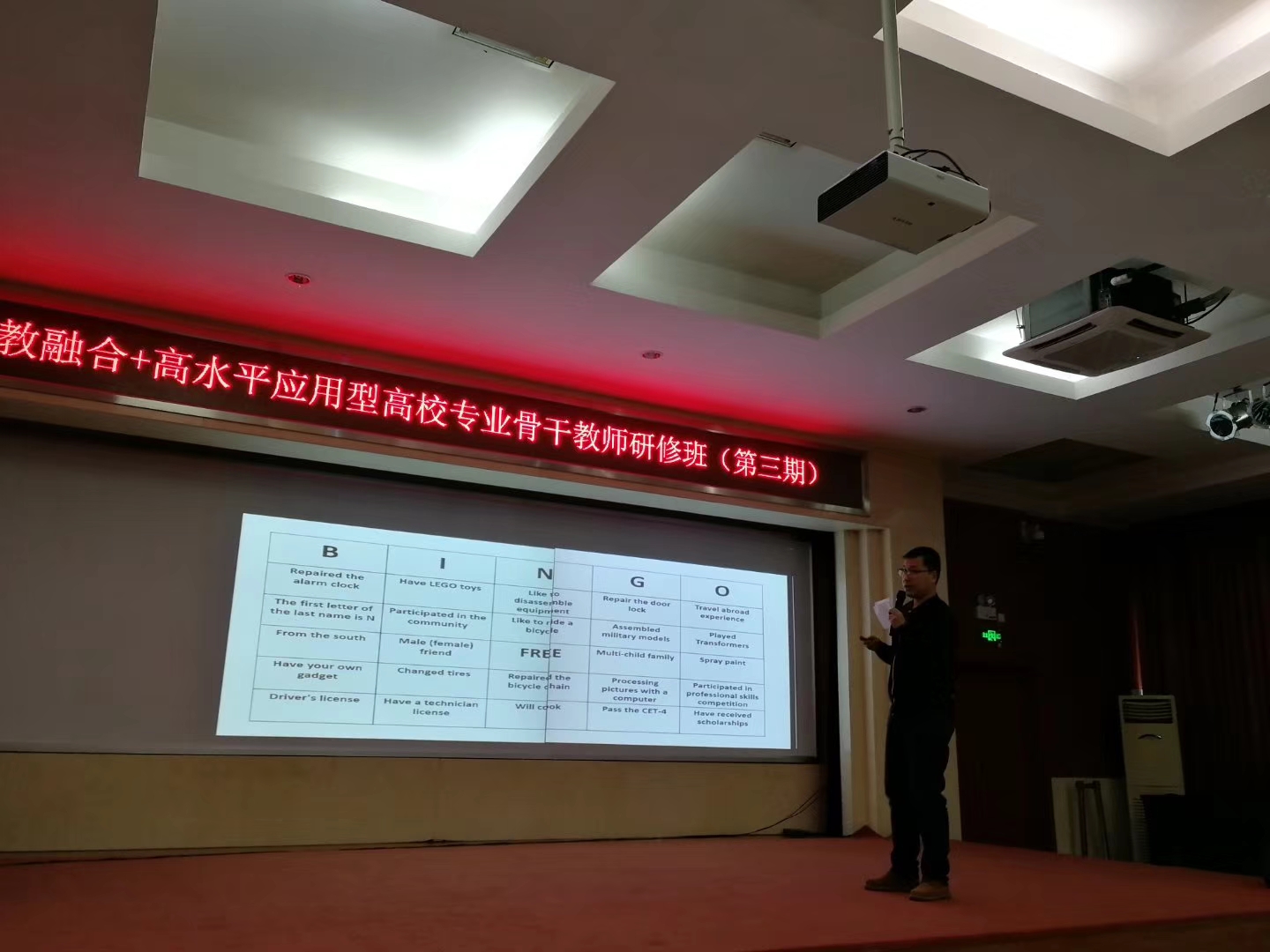 在培训的最后一天上午,全体参训教师5人一组,选择自己所授课程,按照专家讲授的方法,在规定时间内完成课程目标、课程活动、评价方式以及社会服务等。当天下午,各参赛队伍分别通过ppt演讲方式展示了各自的成果。